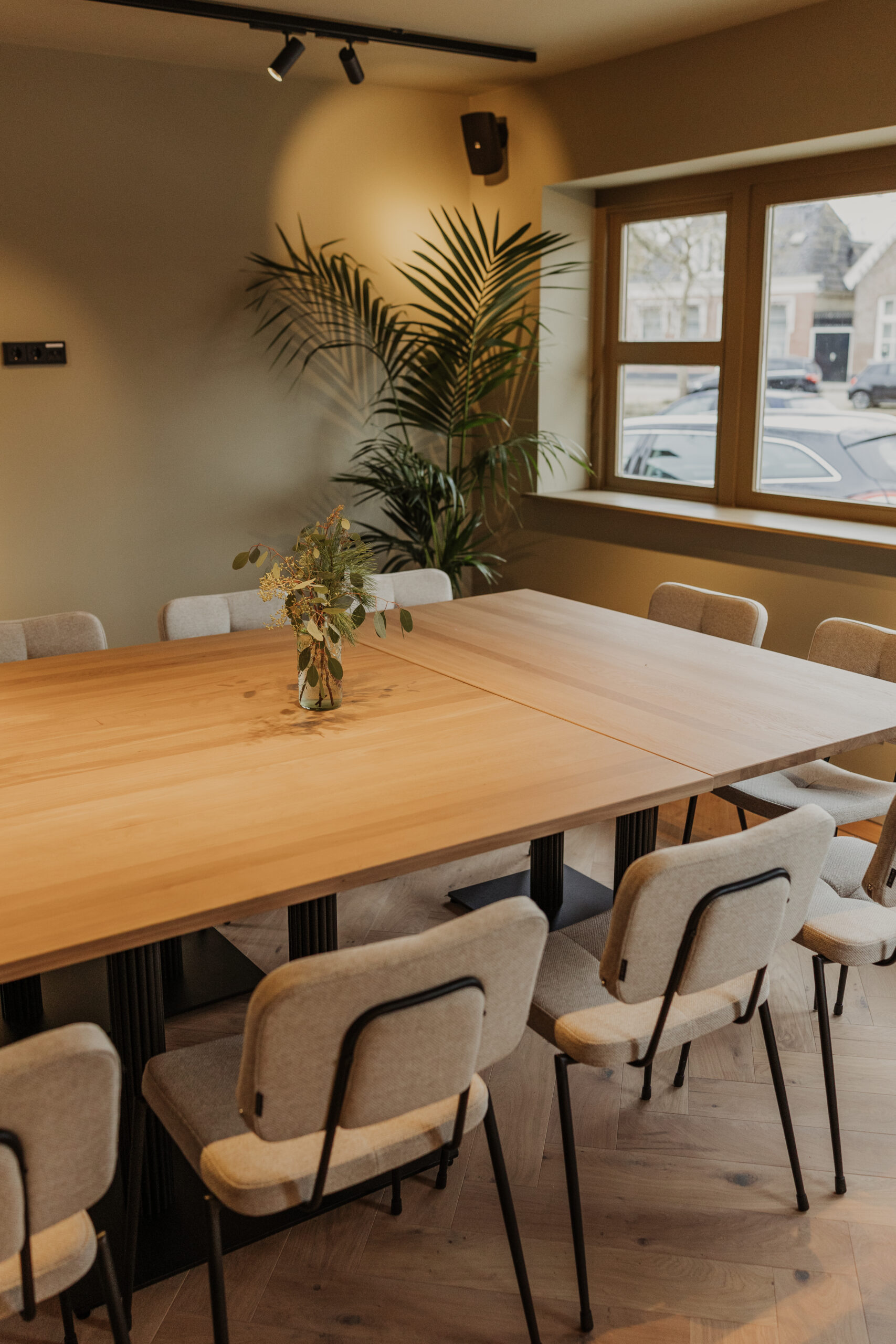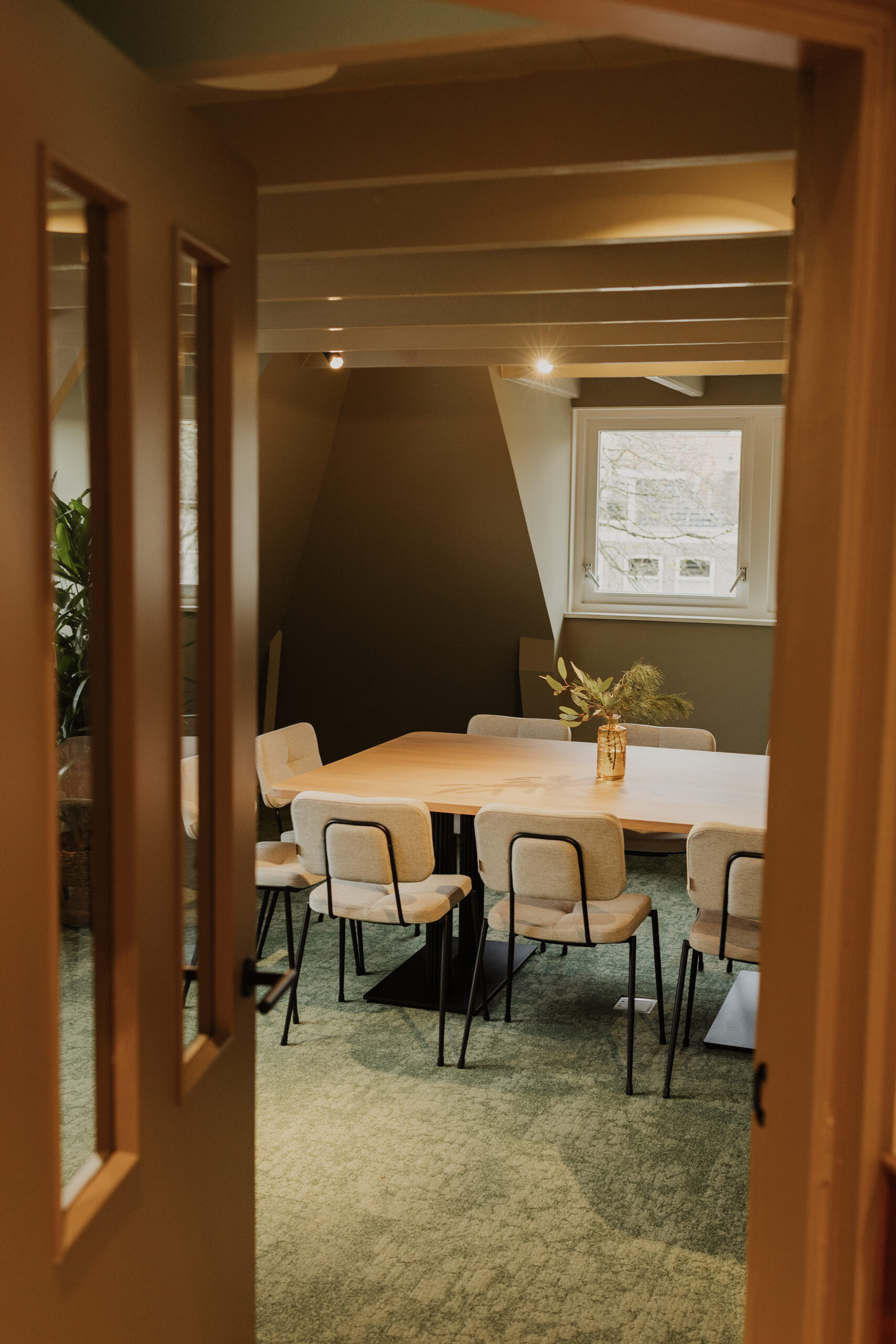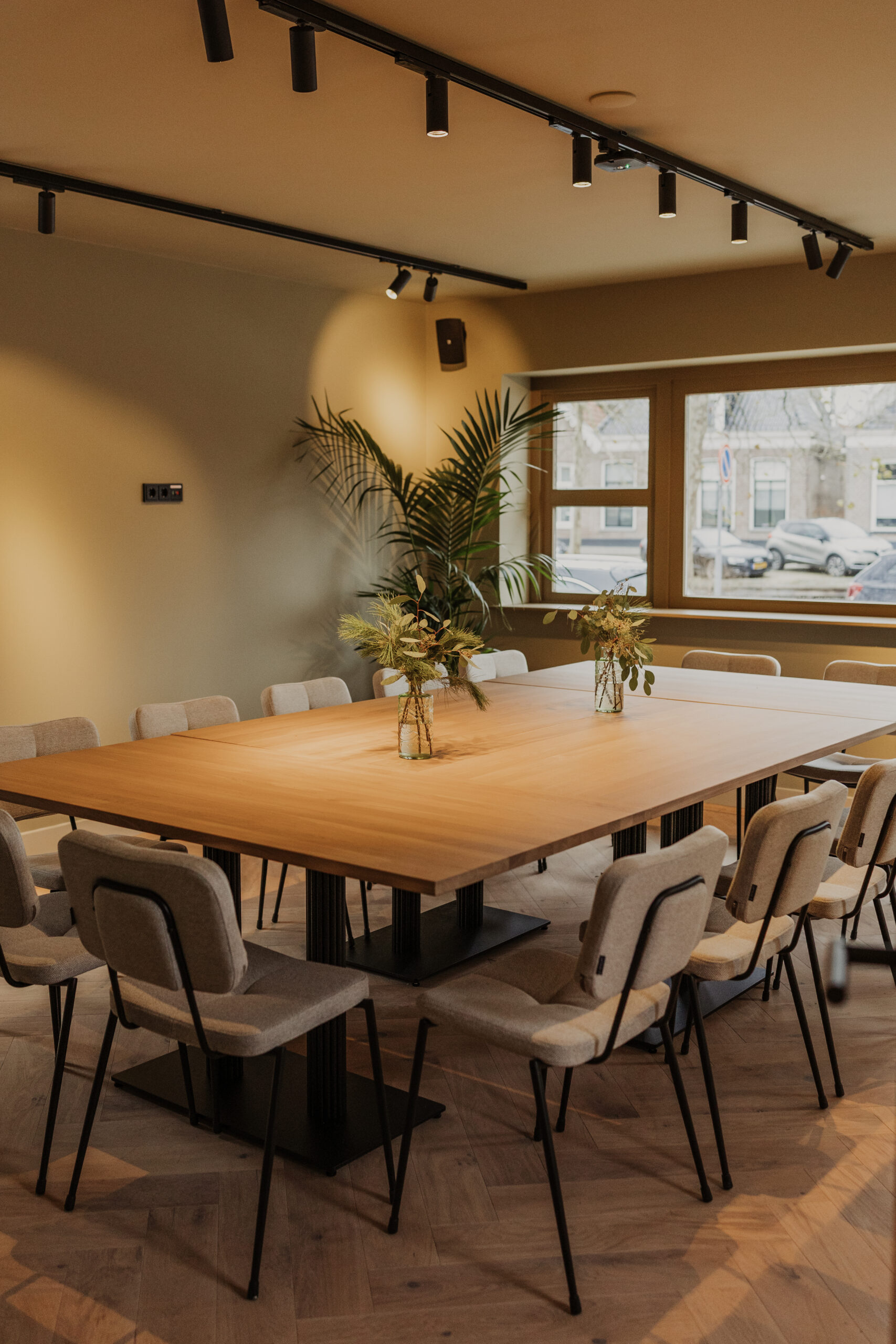 De Tuinkamer kijkt uit over de gracht en beschikt over een aanliggende tuin, waar je tijdens pauzes kunt genieten van rust en frisse lucht. Dankzij het natuurlijke daglicht en het elegante interieur is de zaal perfect geschikt voor vergaderingen, presentaties, private lunches of diners in besloten sfeer.